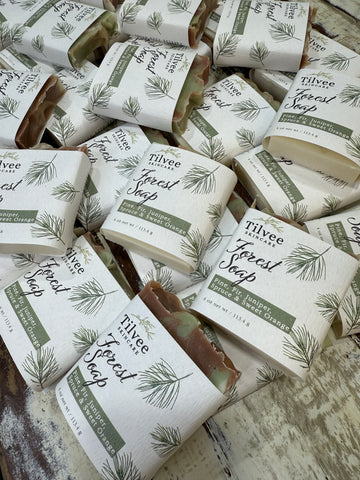 Enjoy an earthy, woodsy soap that is made with organic, gentle and nourishing oils that leave the skin feeling clean, fresh and hydrated. Scented with pure essential oils of pine, fir, juniper and spruce that are reminiscent of a peaceful walk in the woods.